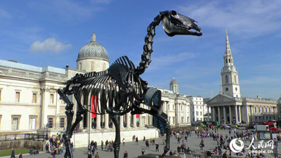 倫敦市長(zhǎng)鮑里斯·約翰遜當(dāng)?shù)貢r(shí)間今日上午揭幕了特拉法加廣場(chǎng)第四基柱的最新作品,由德國(guó)藝術(shù)家漢斯·哈克設(shè)計(jì)的雕塑馬(Gift Horse)。該雕塑將在未來18個(gè)月佇立在特拉法加廣場(chǎng)上,這是第十件展示于第四基柱的藝術(shù)品。